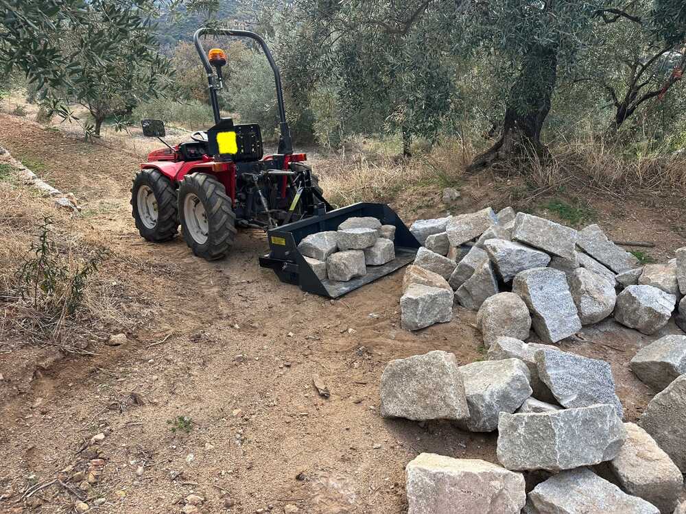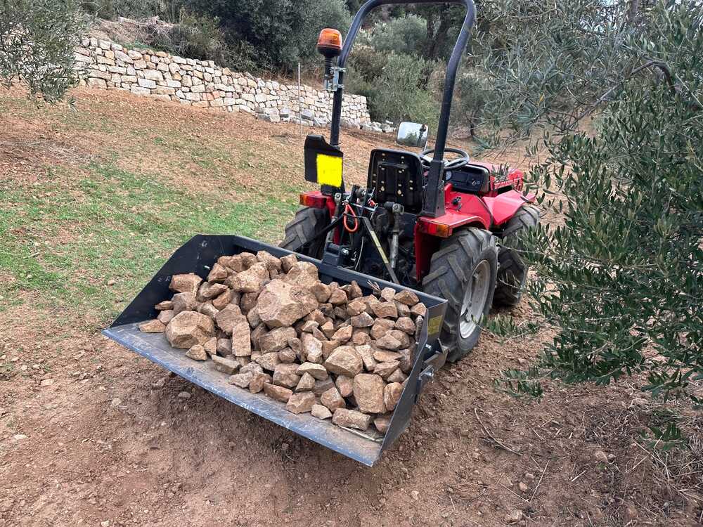 Su sistema de volteo manual mediante palanca garantiza un funcionamiento fiable y sencillo, eliminando la necesidad de conexiones hidráulicas y permitiendo una descarga rápida del contenido. Con una profundidad de 70 cm y una capacidad de carga de 400 kg, esta pala combina robustez y ligereza, facilitando las tareas diarias de mantenimiento sin sobrecargar el sistema de elevación del tractor.