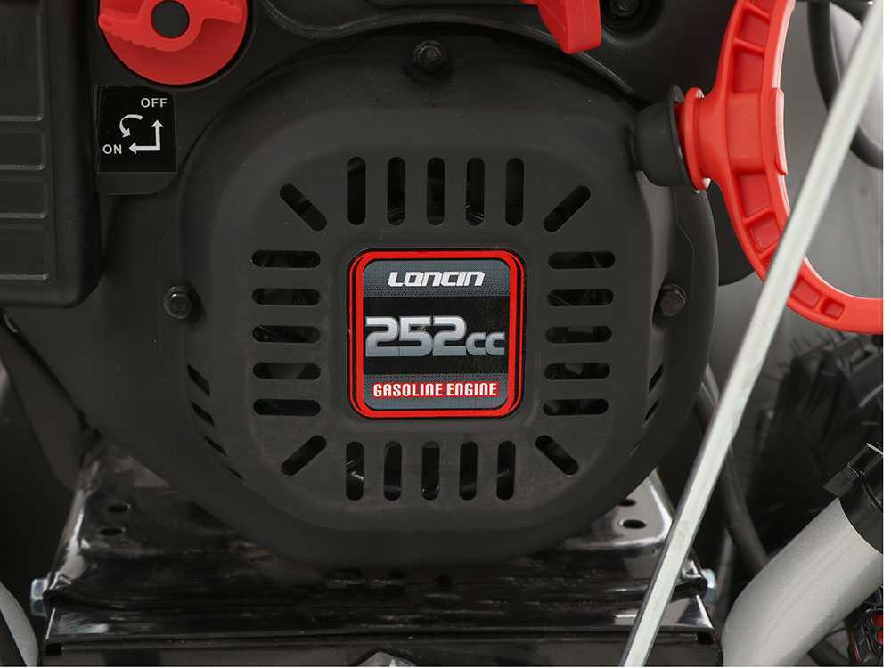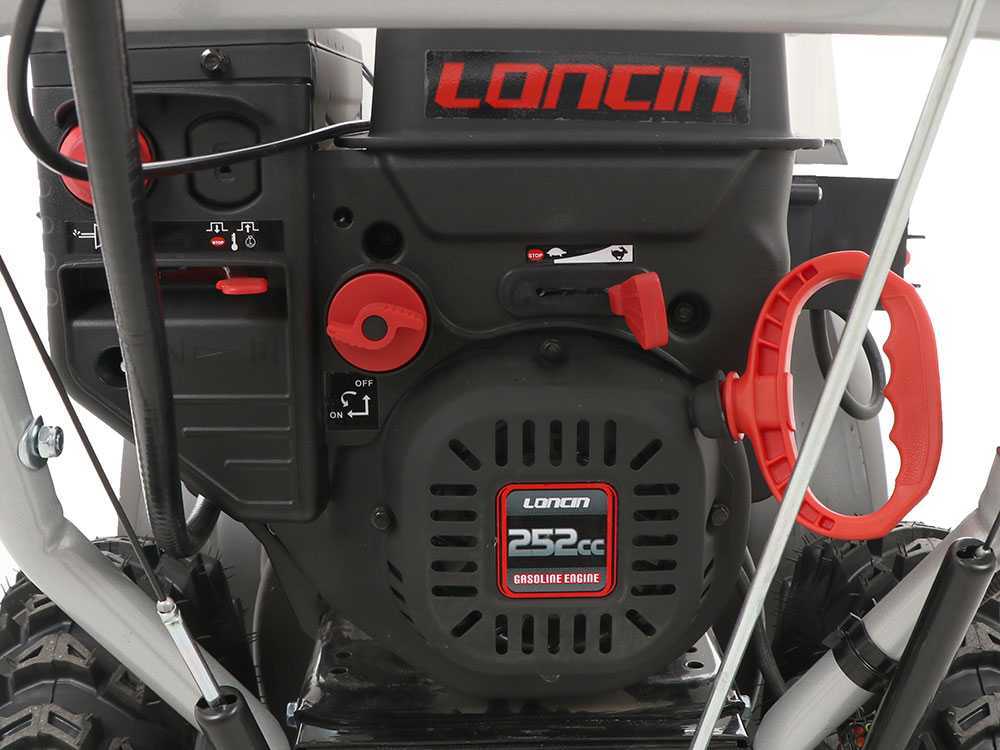 • Motor Loncin 252cc (8.5 HP): Motor de 4 tiempos potente y eficiente, optimizado para climas extremos con descompresión automática.