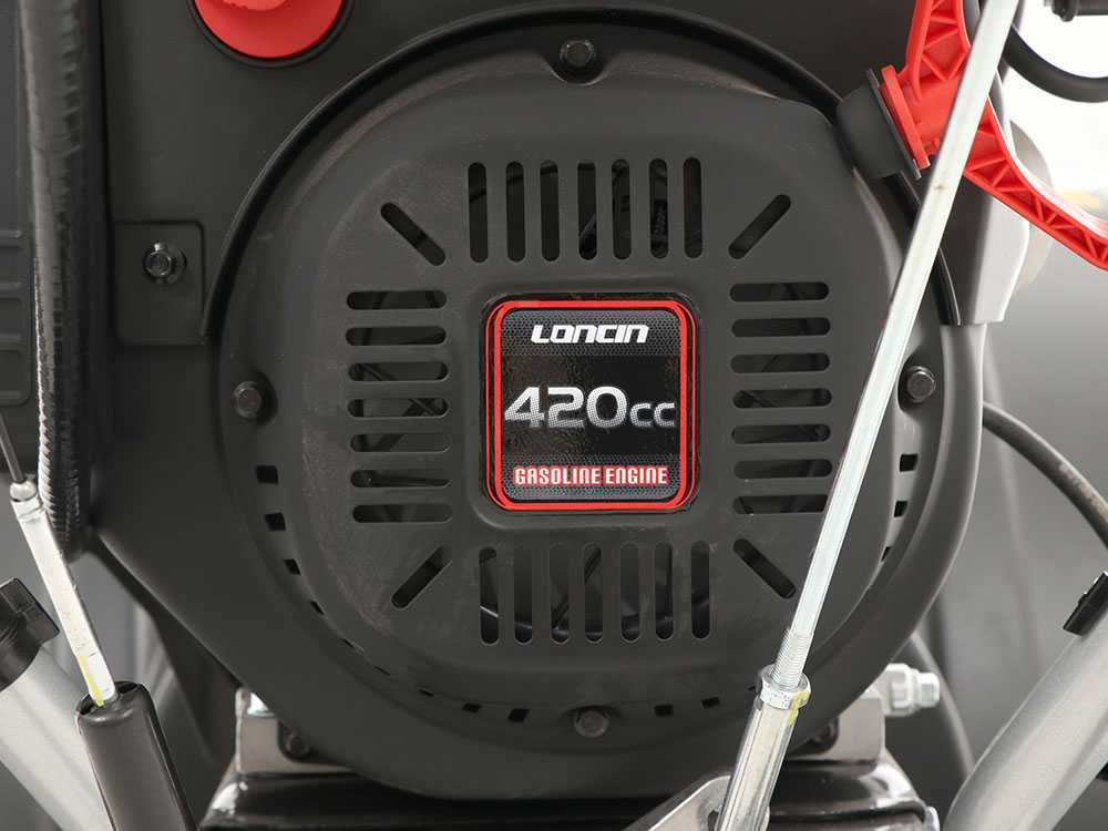 • Motor Loncin 420cc (15 HP): Motor de 4 tiempos de alta cilindrada con válvulas en cabeza (OHV) y descompresión automática para un rendimiento profesional.
