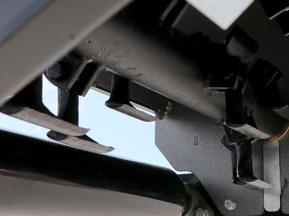 A pesar de su tamaño compacto, está equipada con un rotor de 2 espirales y 12 martillos de 0.4 kg, capaces de triturar hierba alta y restos de poda ligera de hasta 20 mm de diámetro. Su transmisión de 2 correas laterales ofrece una protección eficaz frente a sobrecargas, asegurando una larga vida útil tanto para la máquina como para la toma de fuerza del tractor.