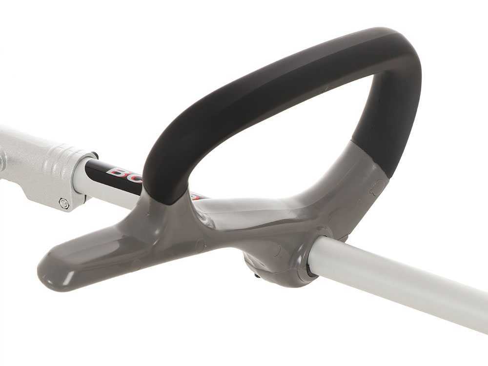 Su estructura cuenta con una barra rígida de 26 mm que garantiza una transmisión de potencia eficiente y duradera. Además, su pértiga desmontable en dos piezas es una ventaja competitiva clave, ya que permite reducir las dimensiones de la máquina para transportarla fácilmente en el maletero o guardarla en espacios reducidos. Con un peso de solo 6.5 kg y un sistema antivibración integrado, es una herramienta extremadamente cómoda para sesiones de trabajo prolongadas.