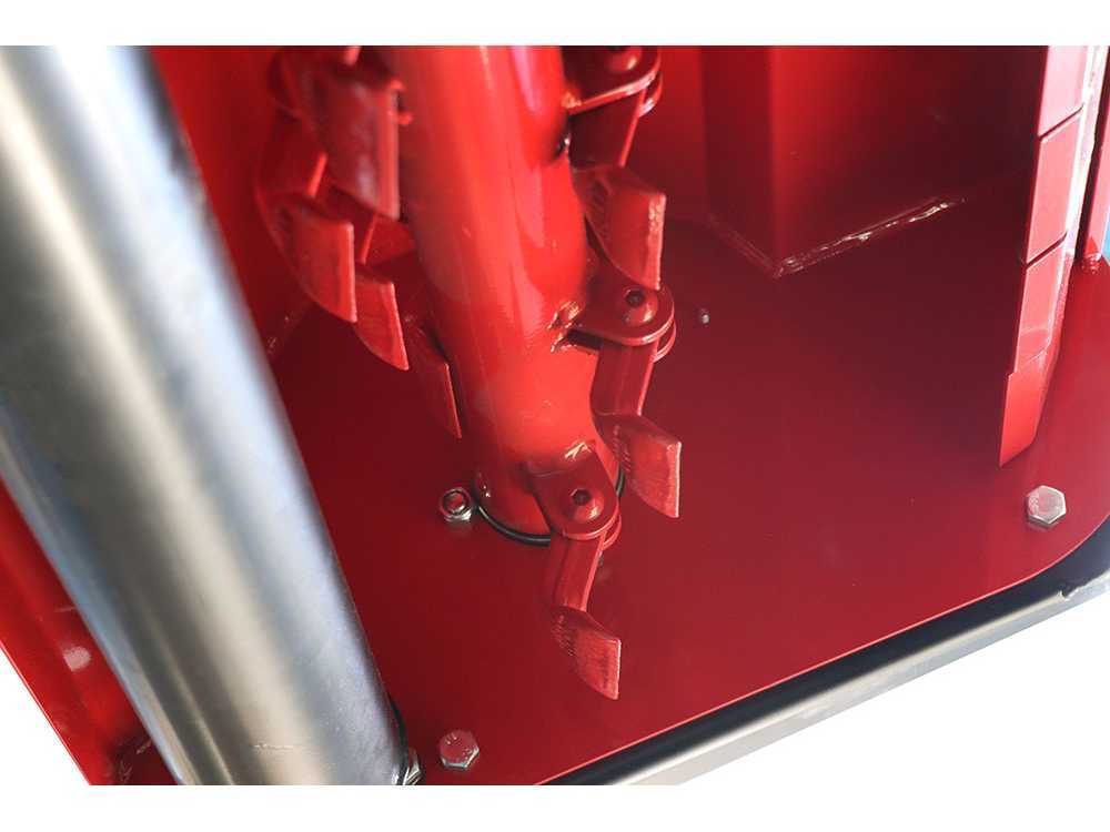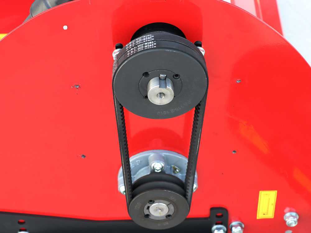 Transmisión de Seguridad: Sistema de correas laterales con dispositivo de rueda libre integrado, que evita que la inercia del rotor dañe la transmisión del tractor al apagar la toma de fuerza.