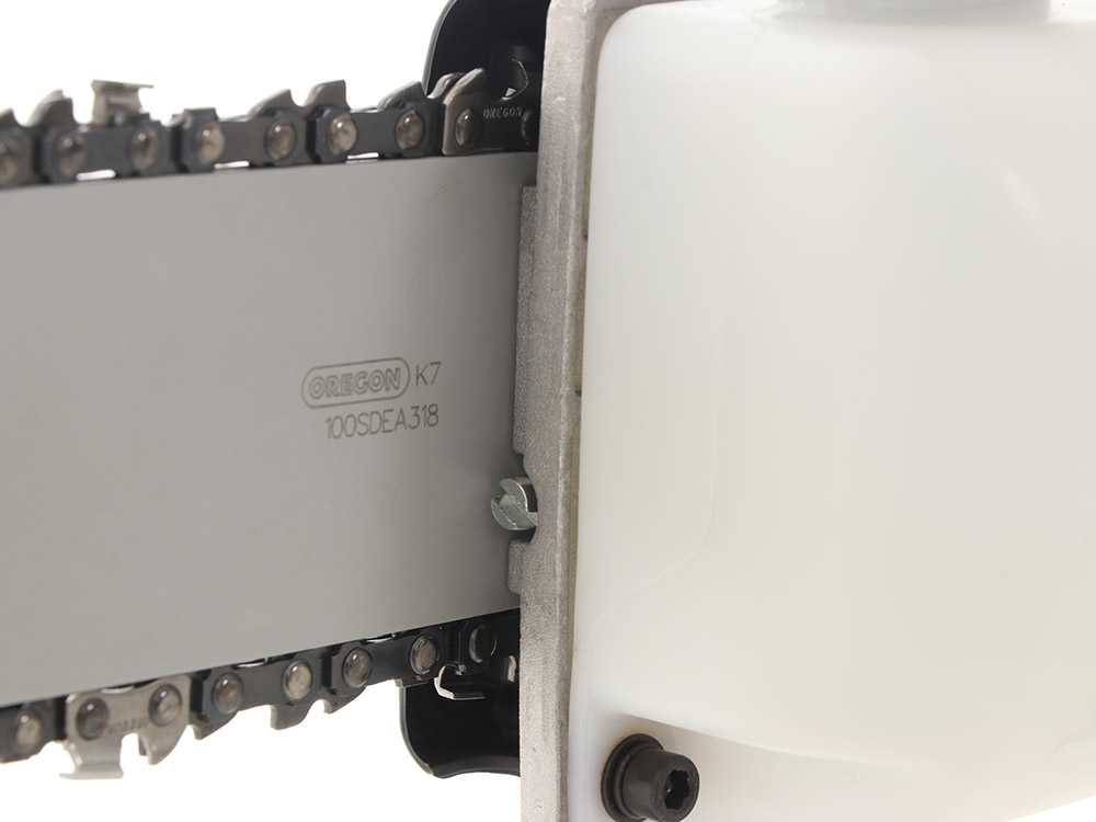 • Podadora de Altura: Espada de 25 cm con cadena de paso 3/8», diseñada para la poda de ramas y el aclarado de árboles sin necesidad de escaleras.