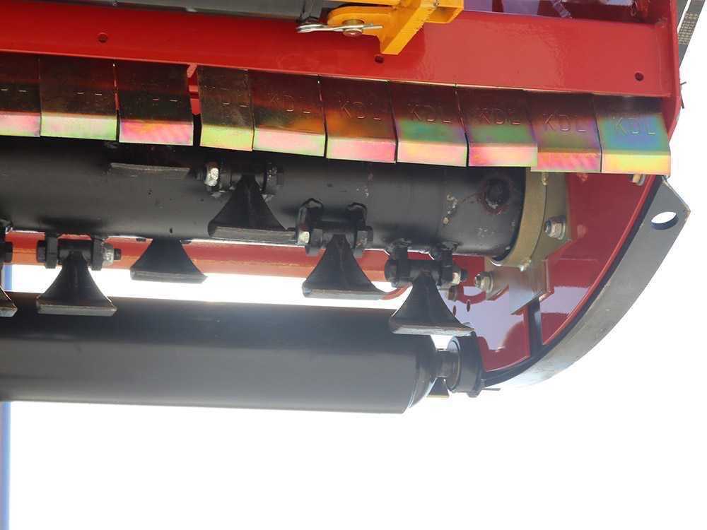 Construida para el trabajo duro, cuenta con un peso neto de 450 kg y un rotor de 2 espirales equipado con 28 martillos pesados (0.8 kg/ud). Esta configuración es capaz de triturar leña y restos de poda de hasta 40 mm de diámetro, dejando un manto de residuo fino. Además, incorpora un chasis abatible (portón trasero) que facilita enormemente las tareas de limpieza del rotor y el mantenimiento de las cuchillas.