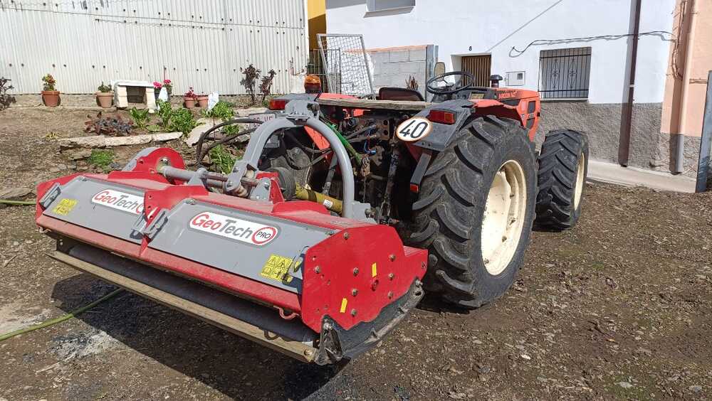 La GeoTech-Pro ESFM 180H es una desbrozadora de martillos profesional diseñada para tractores de entre 55 y 60 HP. Con un ancho de trabajo efectivo de 172 cm, esta máquina permite cubrir grandes superficies en un tiempo récord. Su característica más destacada es el desplazamiento hidráulico, que permite ajustar la posición lateral de la máquina directamente desde el tractor para trabajar con precisión milimétrica cerca de lindes o bajo frutales.