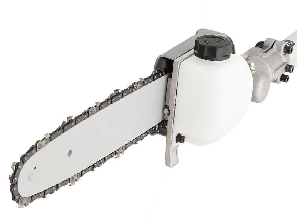 Podadora de Altura: Espada de 25 cm con paso de cadena 3/8» y longitud total de casi 3 metros para poda aérea.