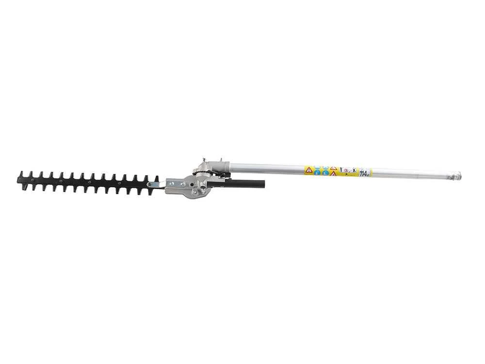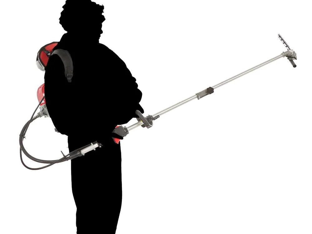 Este sistema «Combi» destaca por su impresionante alcance. Gracias a la prolongación de 75 cm incluida, puede convertirse en una podadora de altura de hasta 3.77 metros o en un cortasetos de largo alcance (3.24 m) con cabezal orientable 270°. Es una máquina diseñada para dominar desde el sotobosque más espeso hasta las copas de los árboles, todo con la fiabilidad de una transmisión de barra rígida y flexible reforzada.