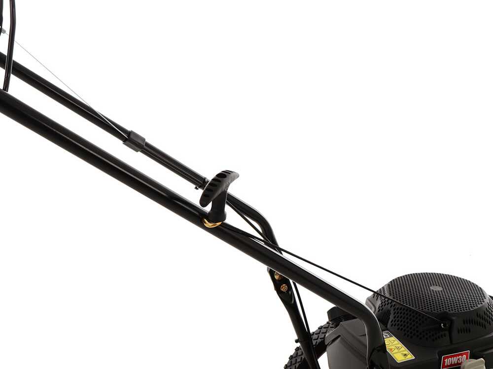 Lo que realmente diferencia a la WST 5522 es su maniobrabilidad. Gracias a sus ruedas traseras de gran diámetro, la máquina se desliza fácilmente por el terreno, permitiendo un ancho de corte de 56 cm que reduce drásticamente el tiempo de trabajo. Además, su sistema de corte mediante cabezal multihilo de acero es regulable en altura, adaptándose a las necesidades específicas de cada rincón de tu propiedad.
